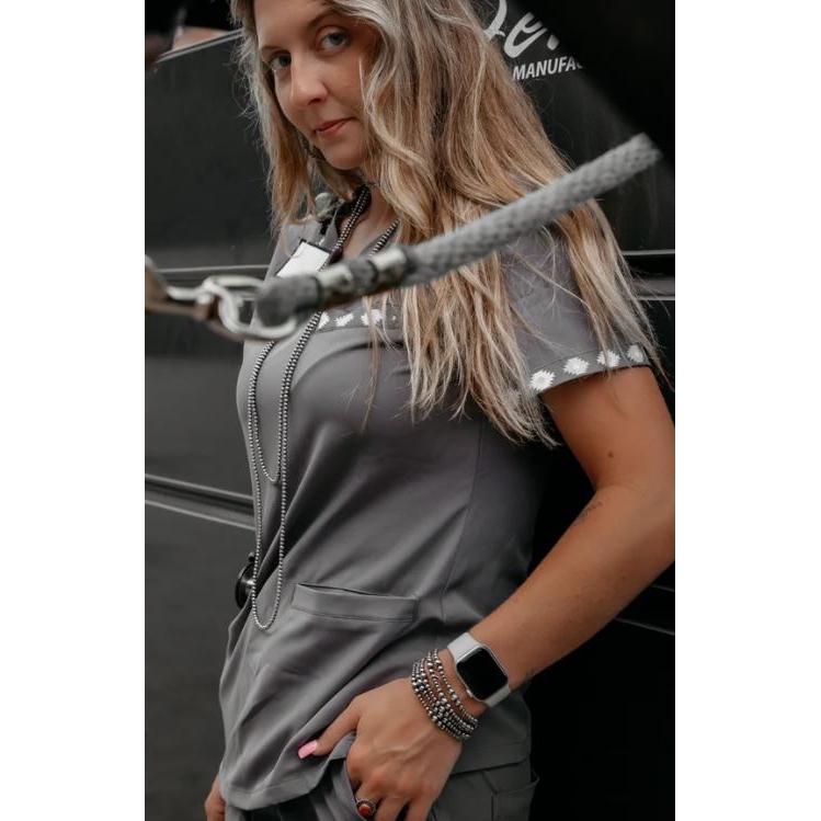 Spurrin' Scrubs Aztec Scrub Top- Grey