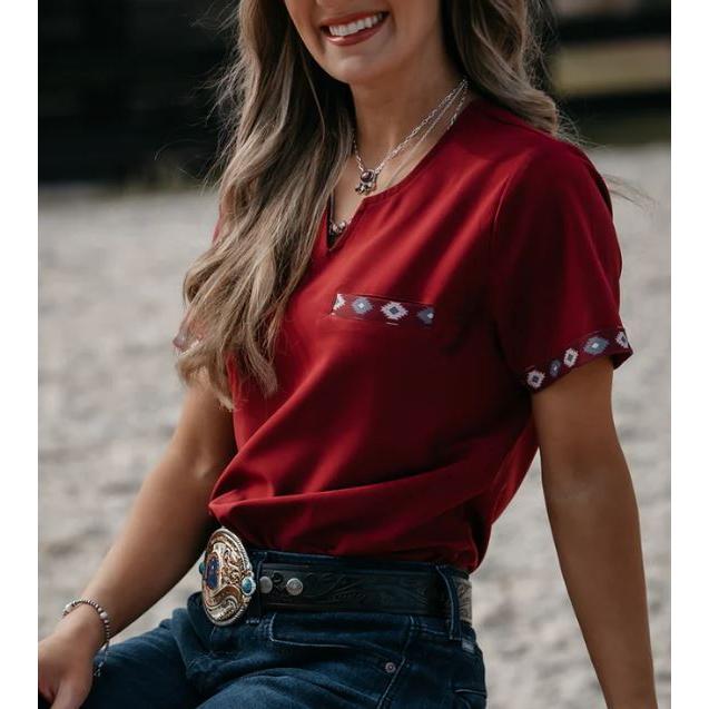 Spurrin' Scrubs Aztec Scrub Top- Maroon
