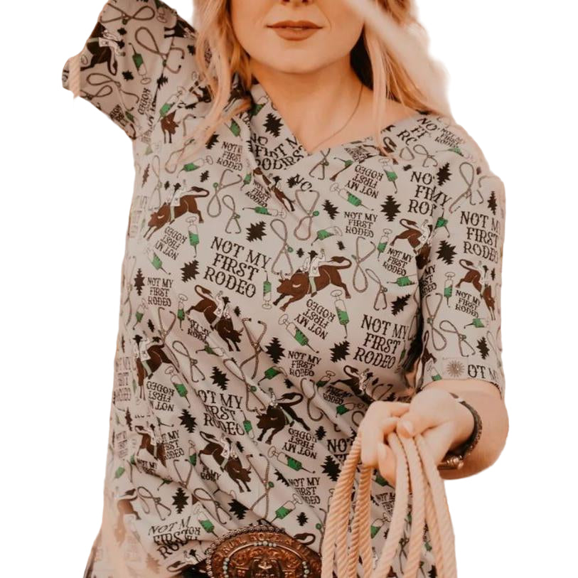Spurrin' Scrubs Not My First Rodeo Scrub Top- Tan