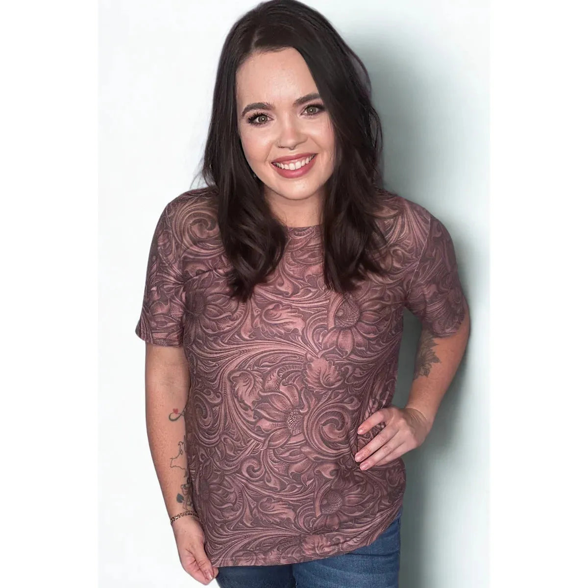 - This playful top features an adorable tooled pattern that adds a touch of western charm to your wardrobe