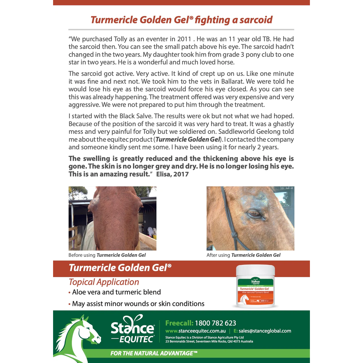 - Turmericle Golden Gel may also assist with the treatment and prevention of Proud Flesh.