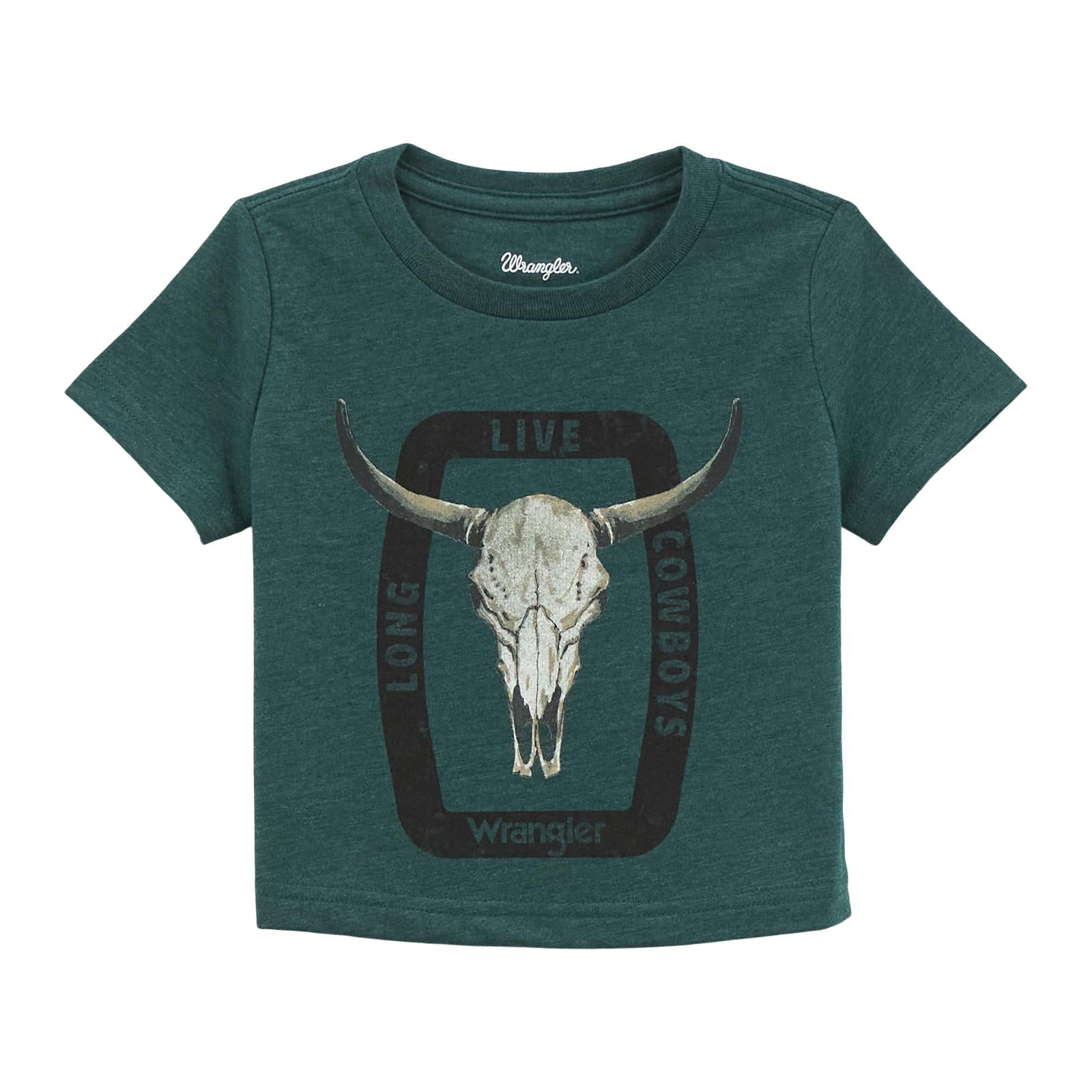 Wrangler Baby Boy's Steer Graphic Short Sleeve Tee Shirt- Sea Moss Heather