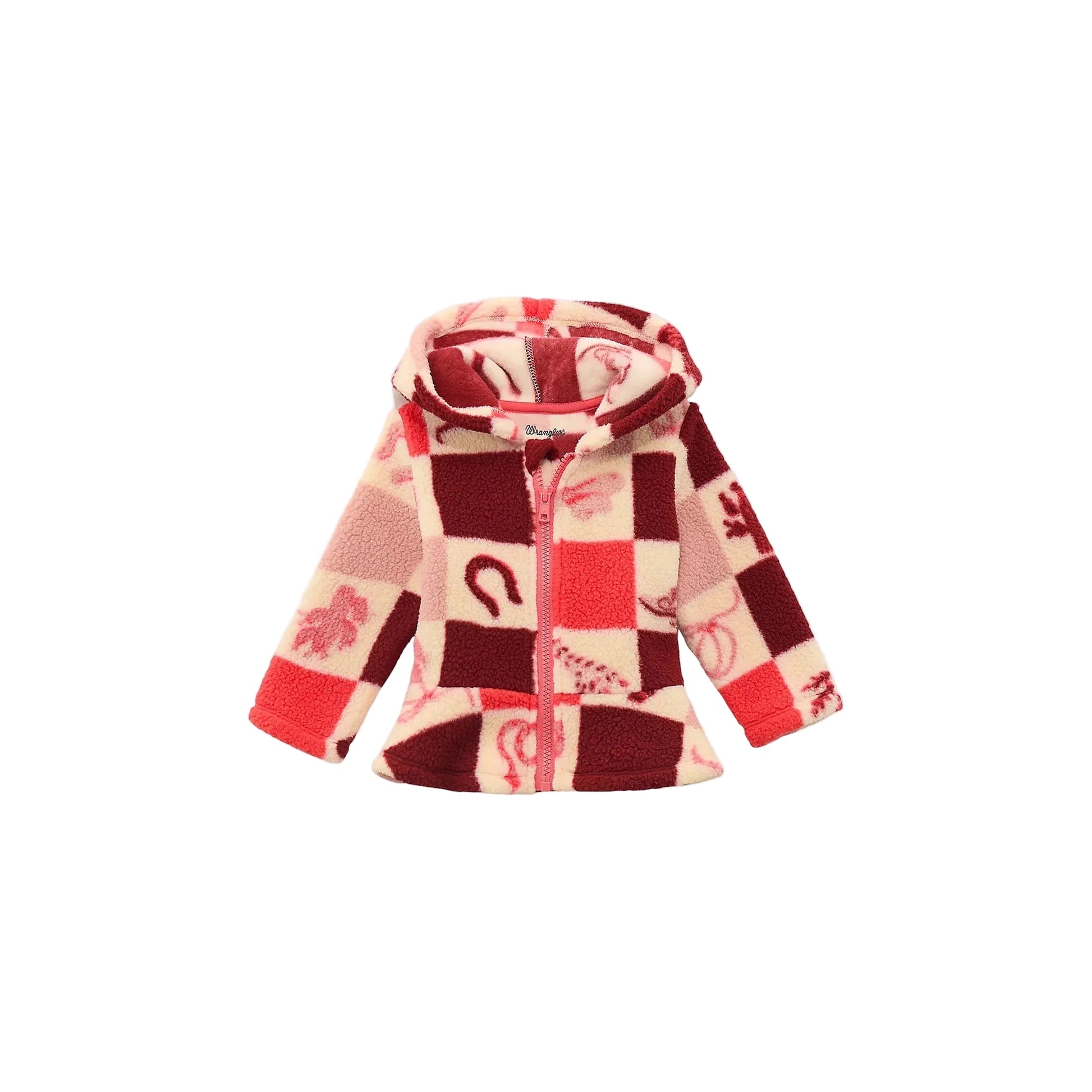 Wrangler Baby Girl Hooded Full Zip Ruffle Hem Sherpa- Pink
