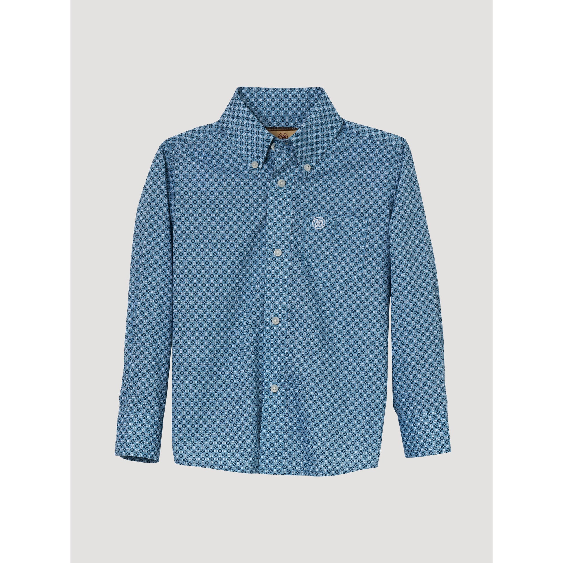 Wrangler Boy's Classic Long Sleeve Geometric Shirt - Blue