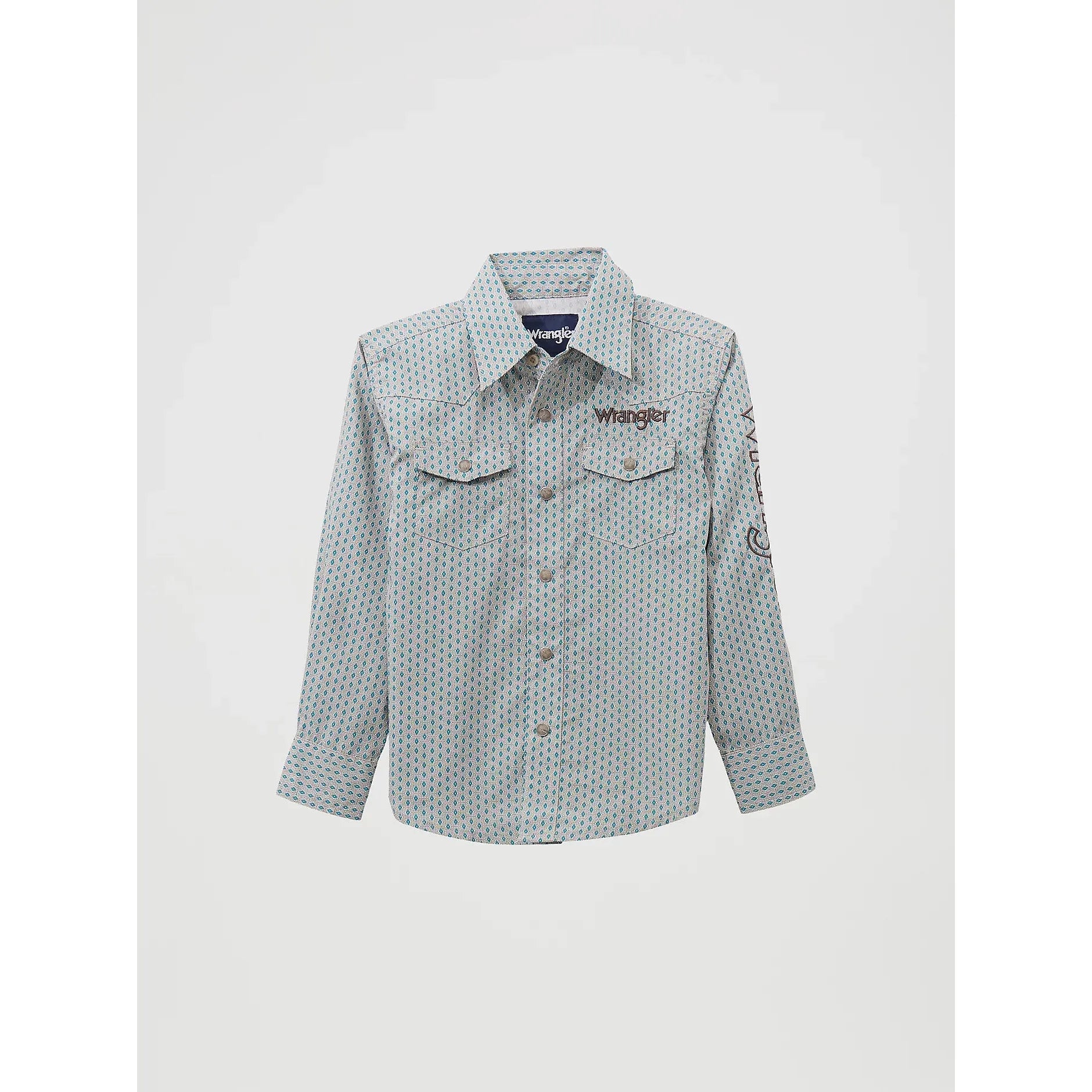 Wrangler Boy's Logo Western Snap Long Sleeve Shirt - Peacock