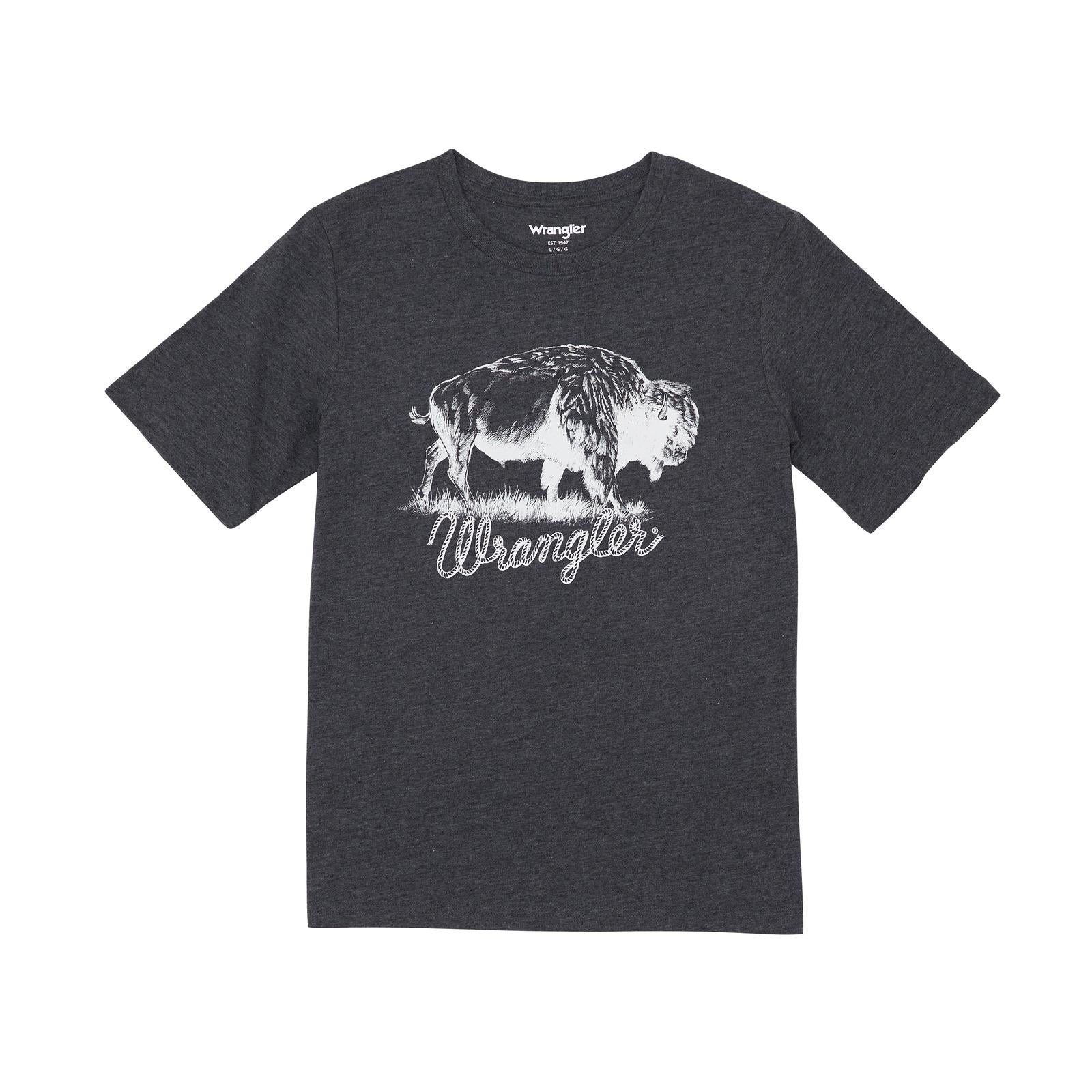 Wrangler Boys Short Sleeve Graphic Tee Shirt- Caviar Heather