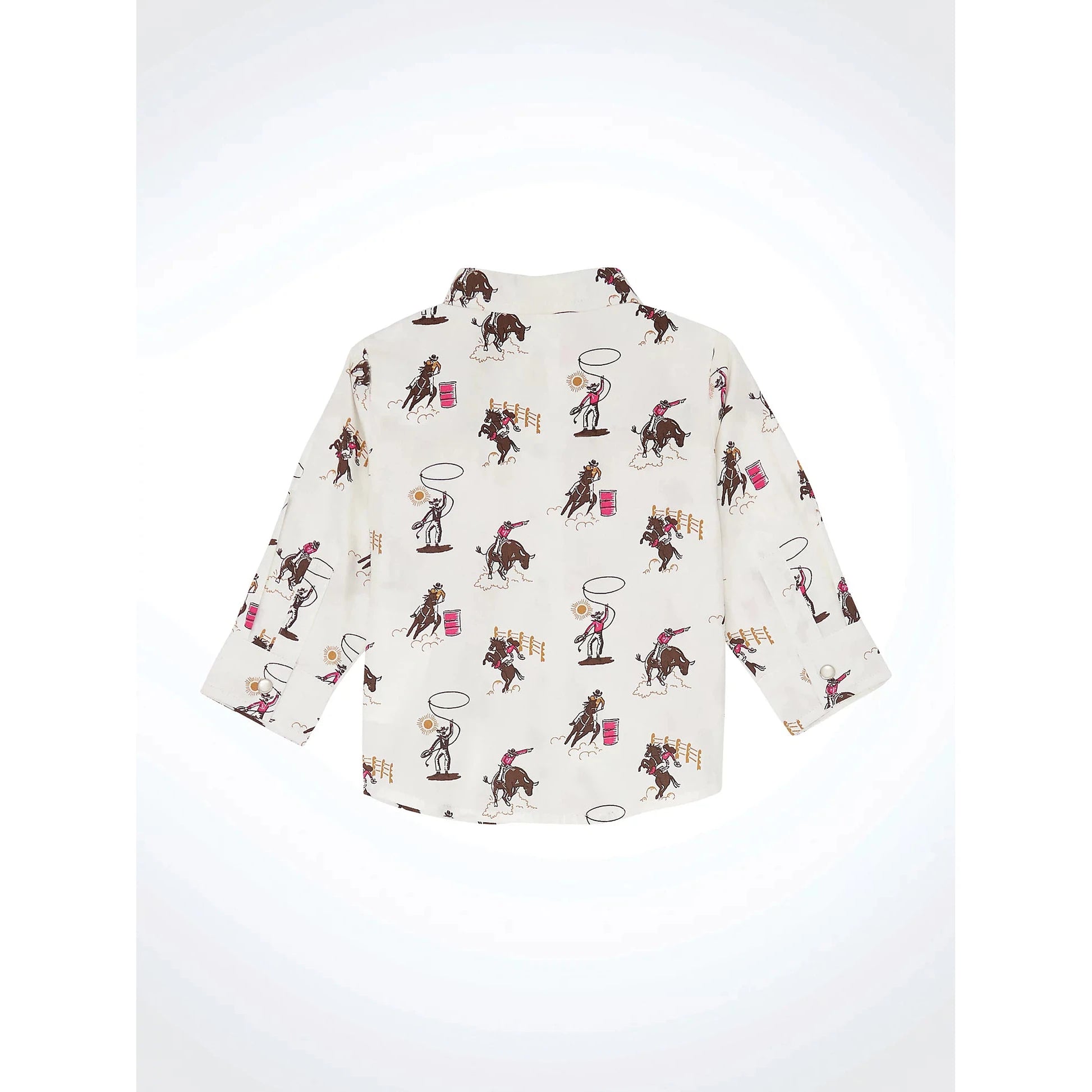 Wrangler Girl's HO24 Long Sleeve Baby Girl Western Snap Shirt- White