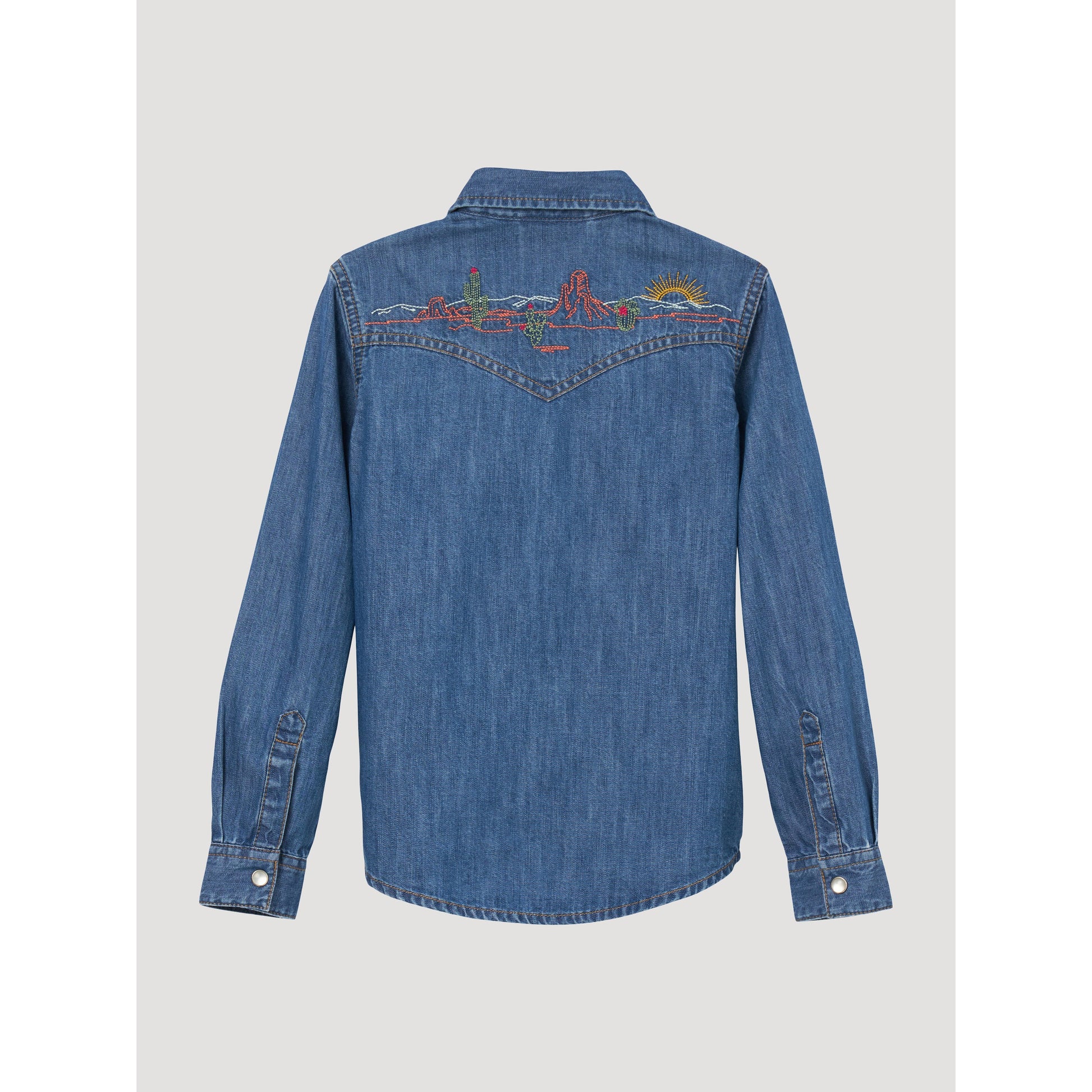 Wrangler Girl's Long Sleeve Embroidered Denim Snap Shirt - Dark Wash