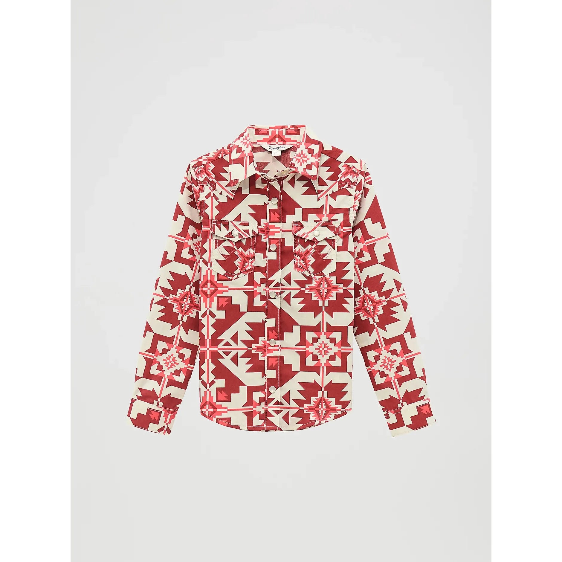 Wrangler Girl's Long Sleeve Geo Print Western Snap Shirt- Checotah Pink