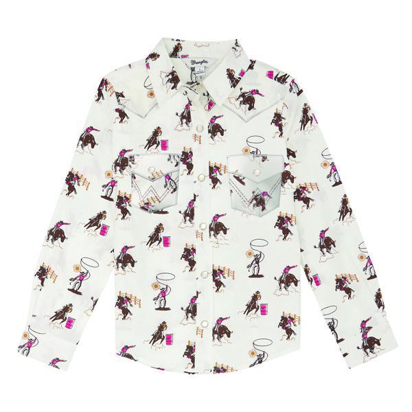 Wrangler Girl's Long Sleeve Rodeo Cowboy Print Snap Shirt