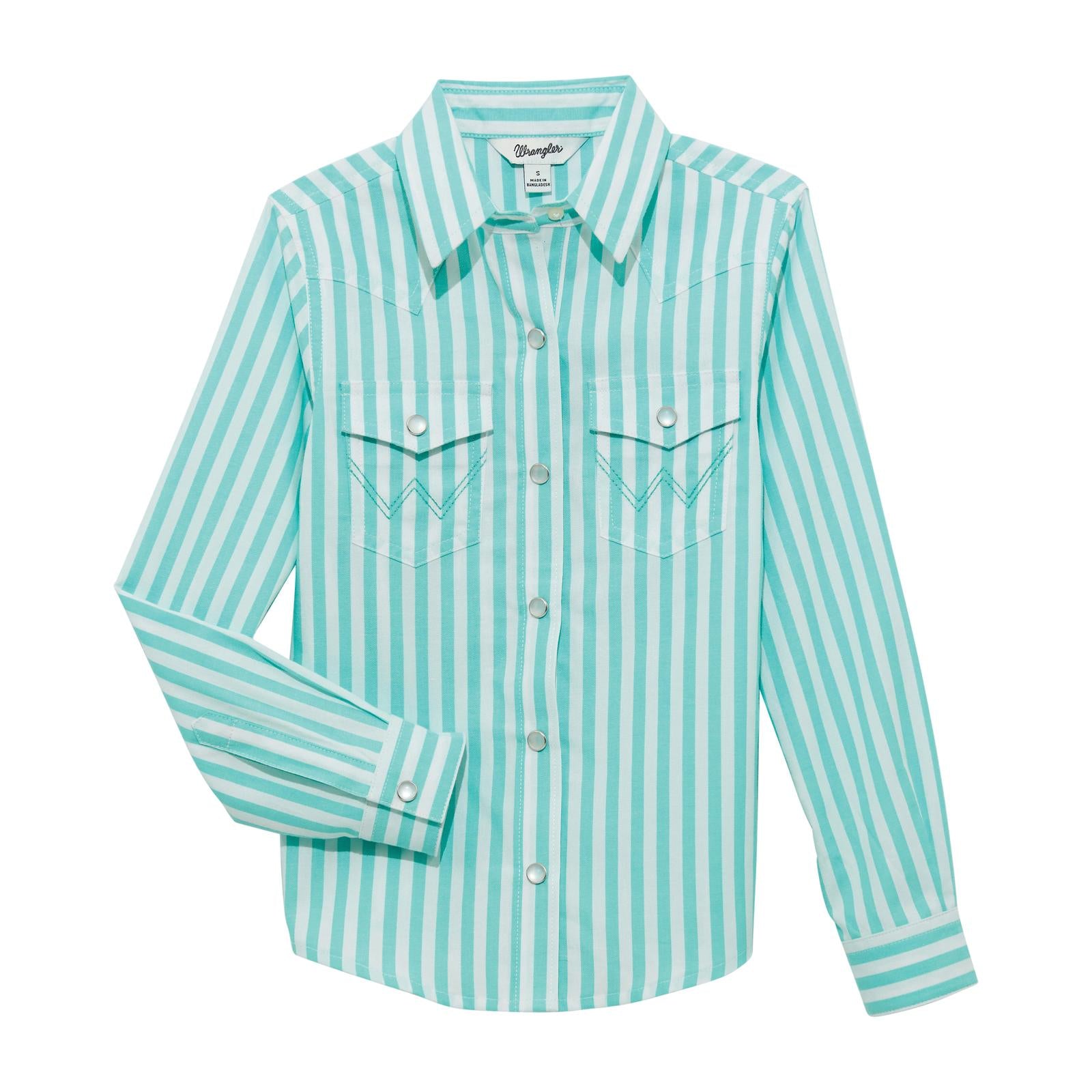 Wrangler Girl's Long Sleeve Western Shirt- Teal