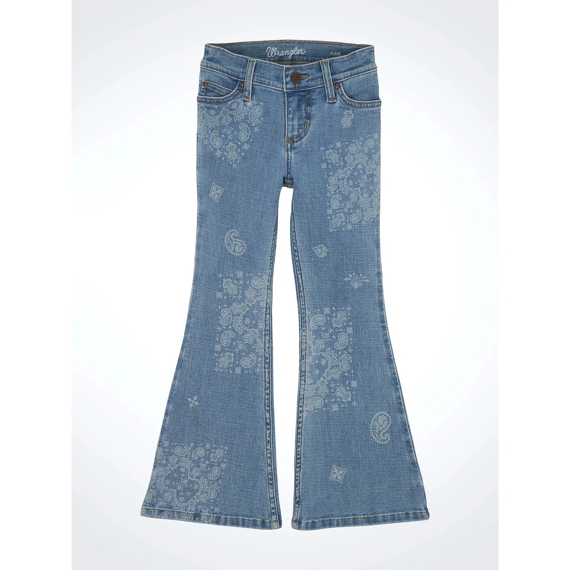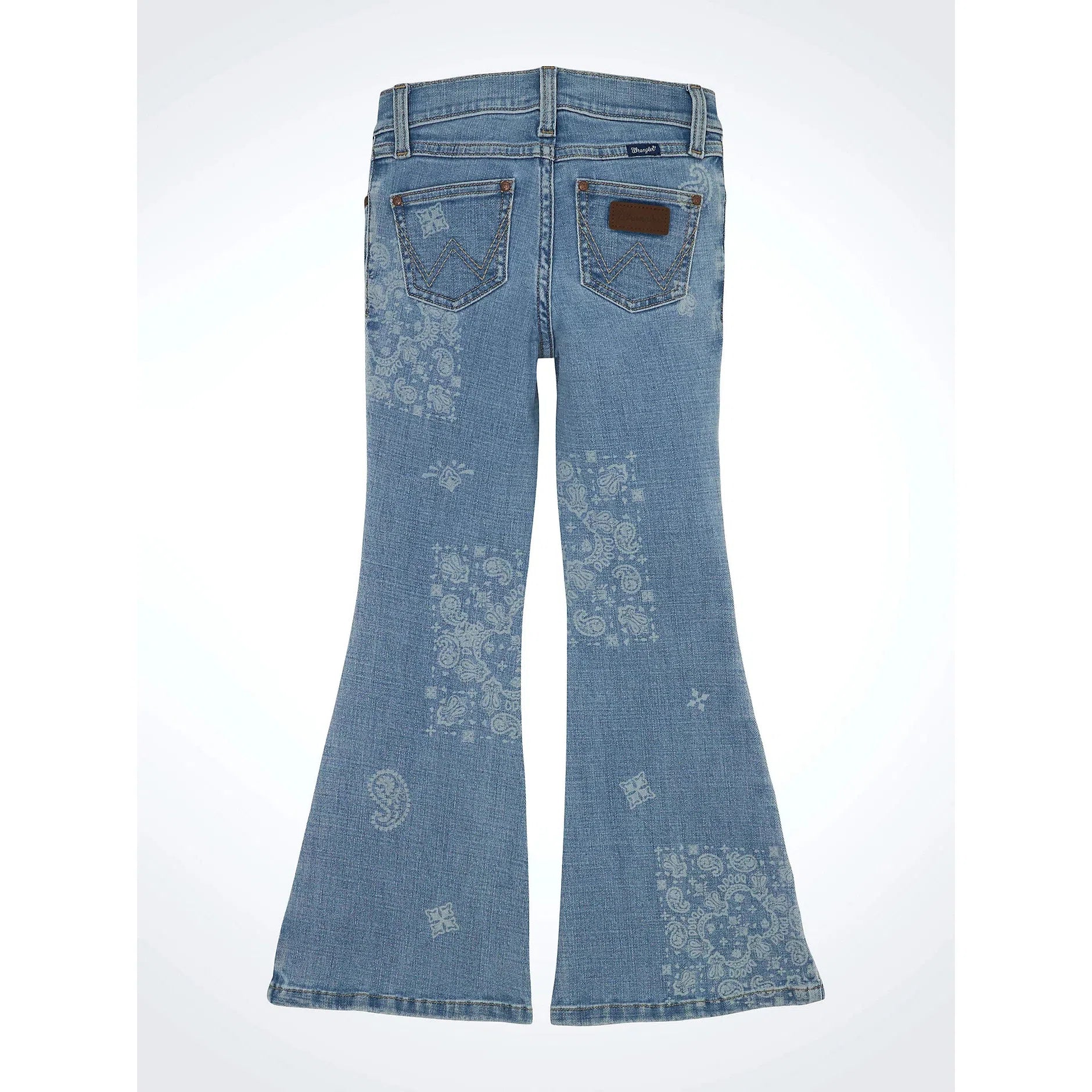 She’ll rock our Girl’s Wrangler Retro® Bandana Flare Jean, and it looks just like the women’s version. This adorable bootcut comes with laser-printed paisley patches and all the heritage details: the five-pocket styling, the ‘W’ stitching, and a logo patch. Plus, the flare leg will look great with her favorite pair of boots.