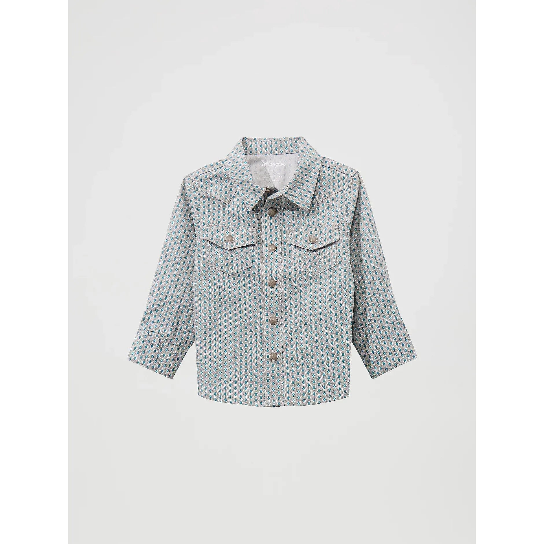 Wrangler Little Boys Long Sleeve Print Western Snap Shirt - Peacock