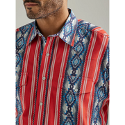Wrangler Men's Checotah Long Sleeve Western Snap Printed Shirt - Cherry Pie Red