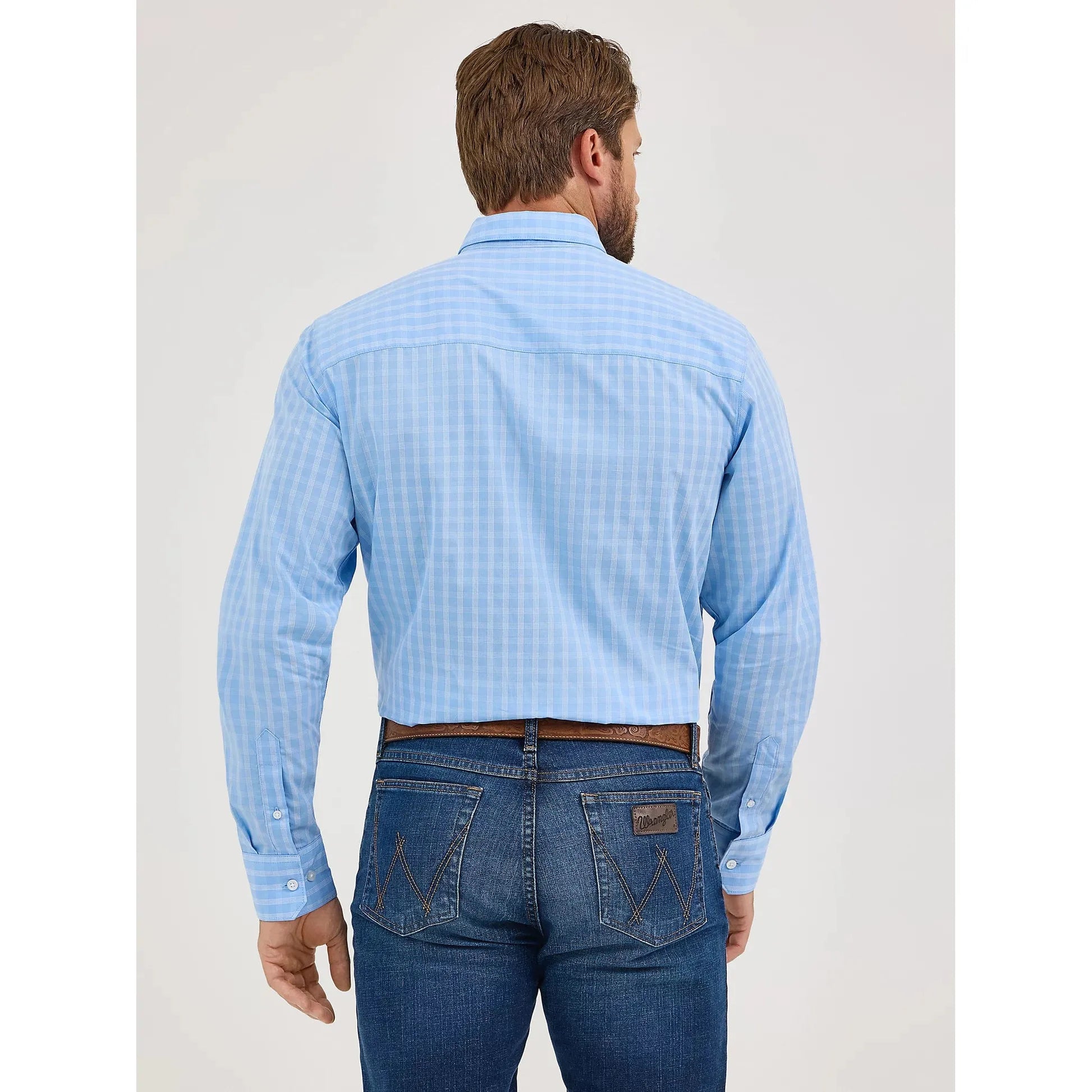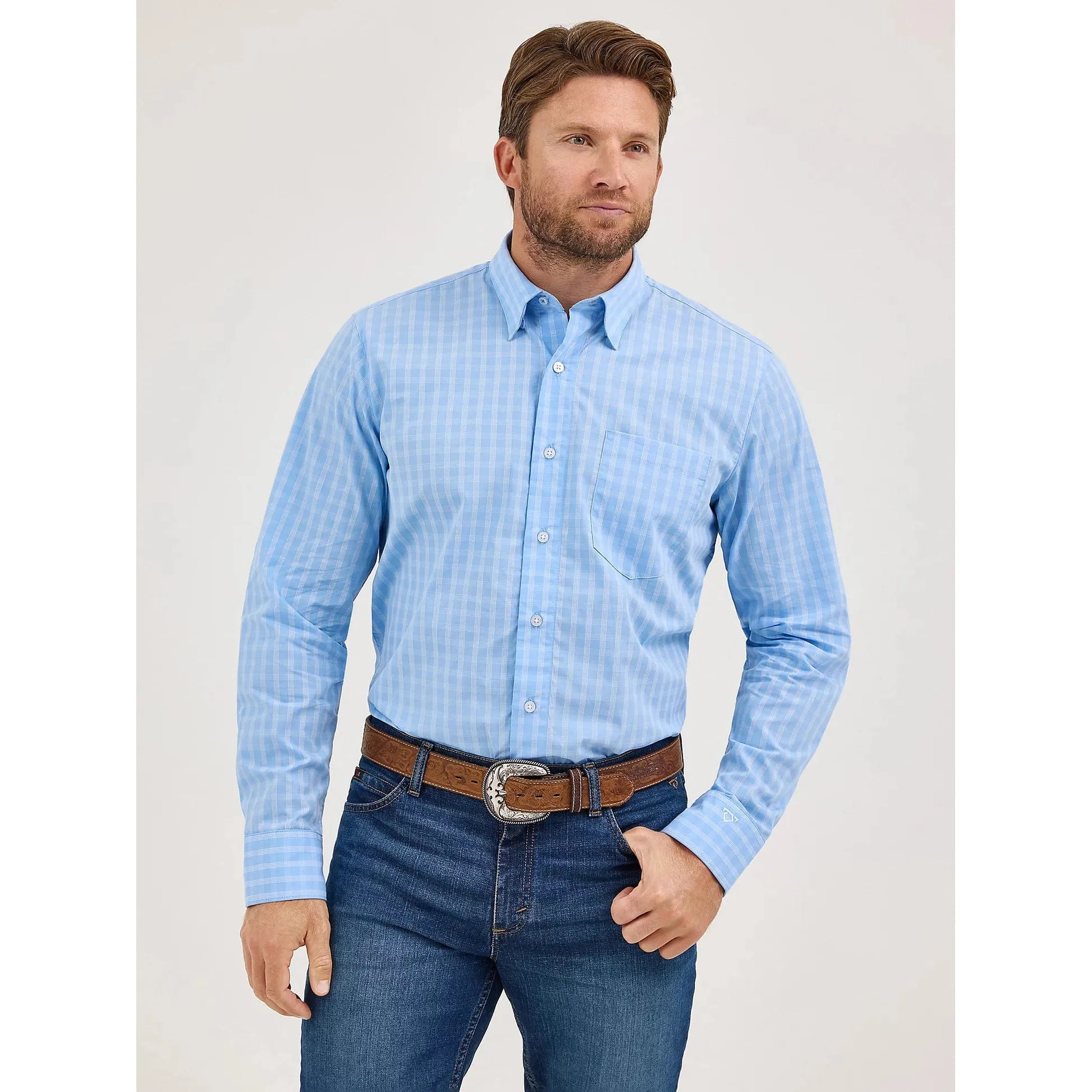 Wrangler Men's Cody Johnson One Pocket Button Down Long Sleeve Shirt - French Blue Check