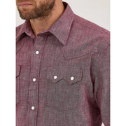 Wrangler Men's Cody Johnson Two Pocket Western Long Sleeve Snap Shirt - Burgundy