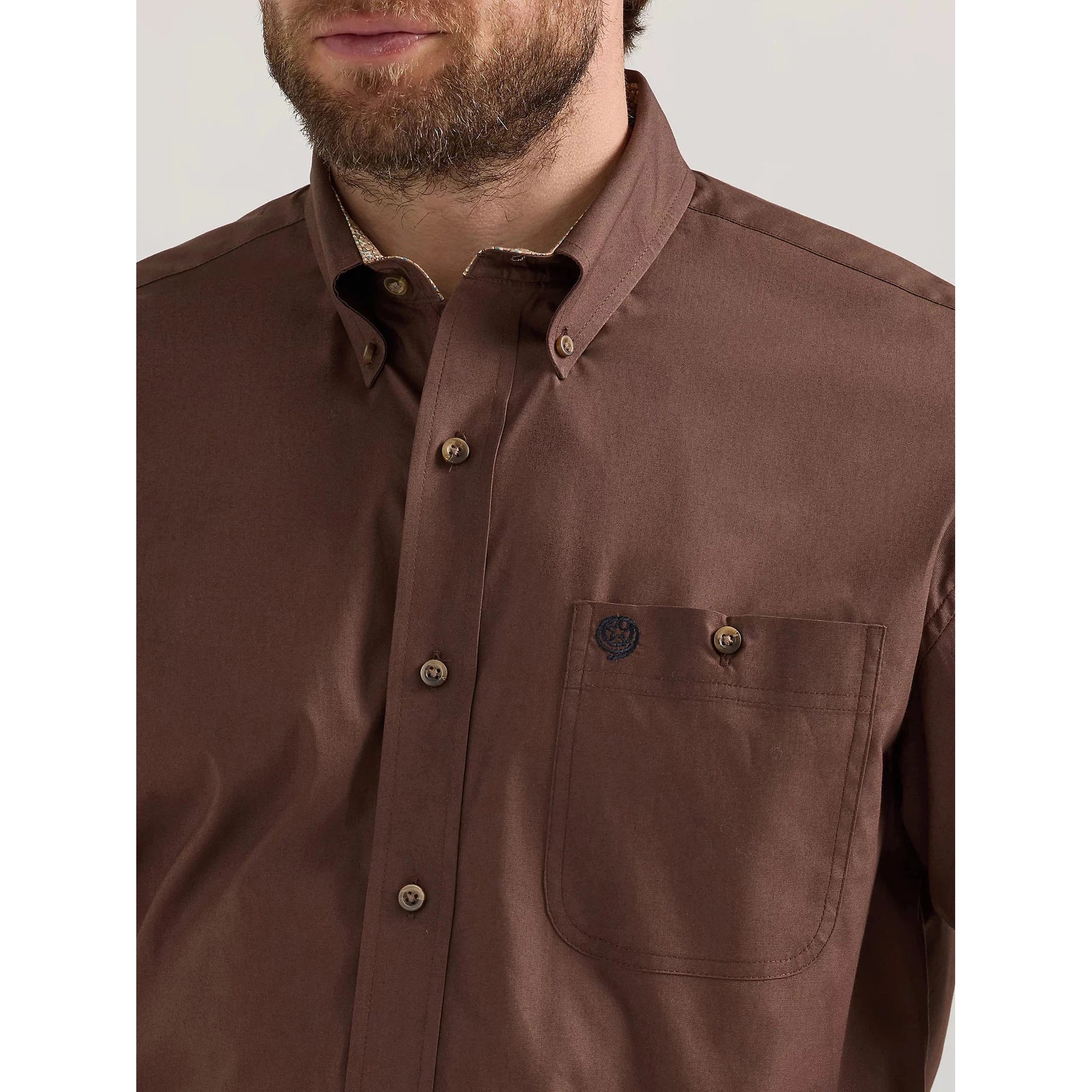 Wrangler Men's George Strait Button Down Long Sleeve Shirt - Brown Chocolate