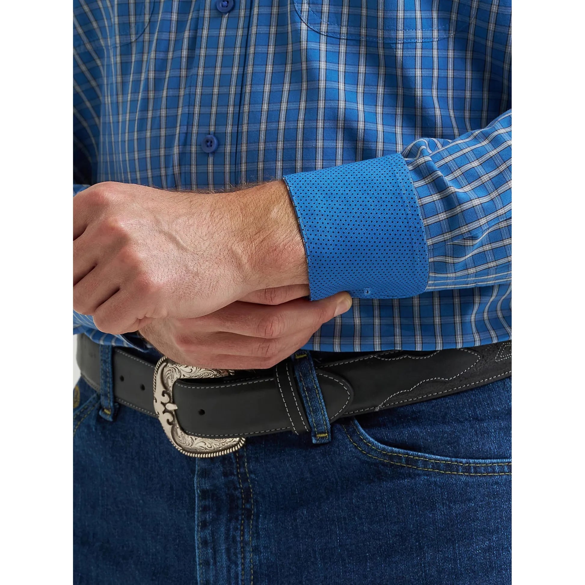 Wrangler Men's George Strait Long Sleeve Button Down Shirt - Cerulean Plaid