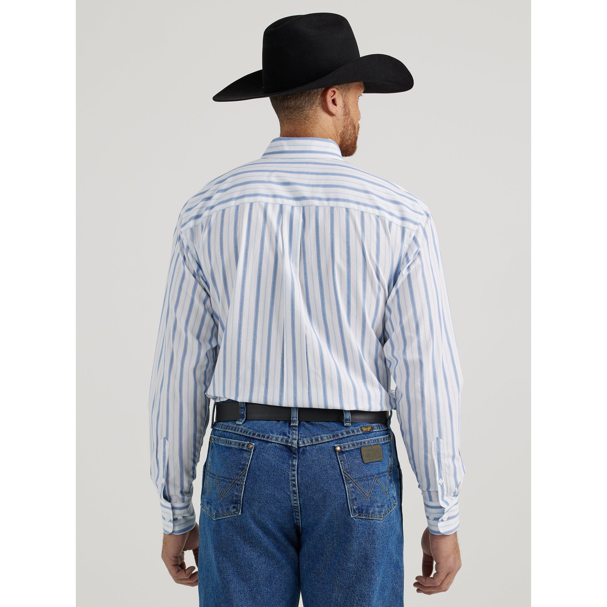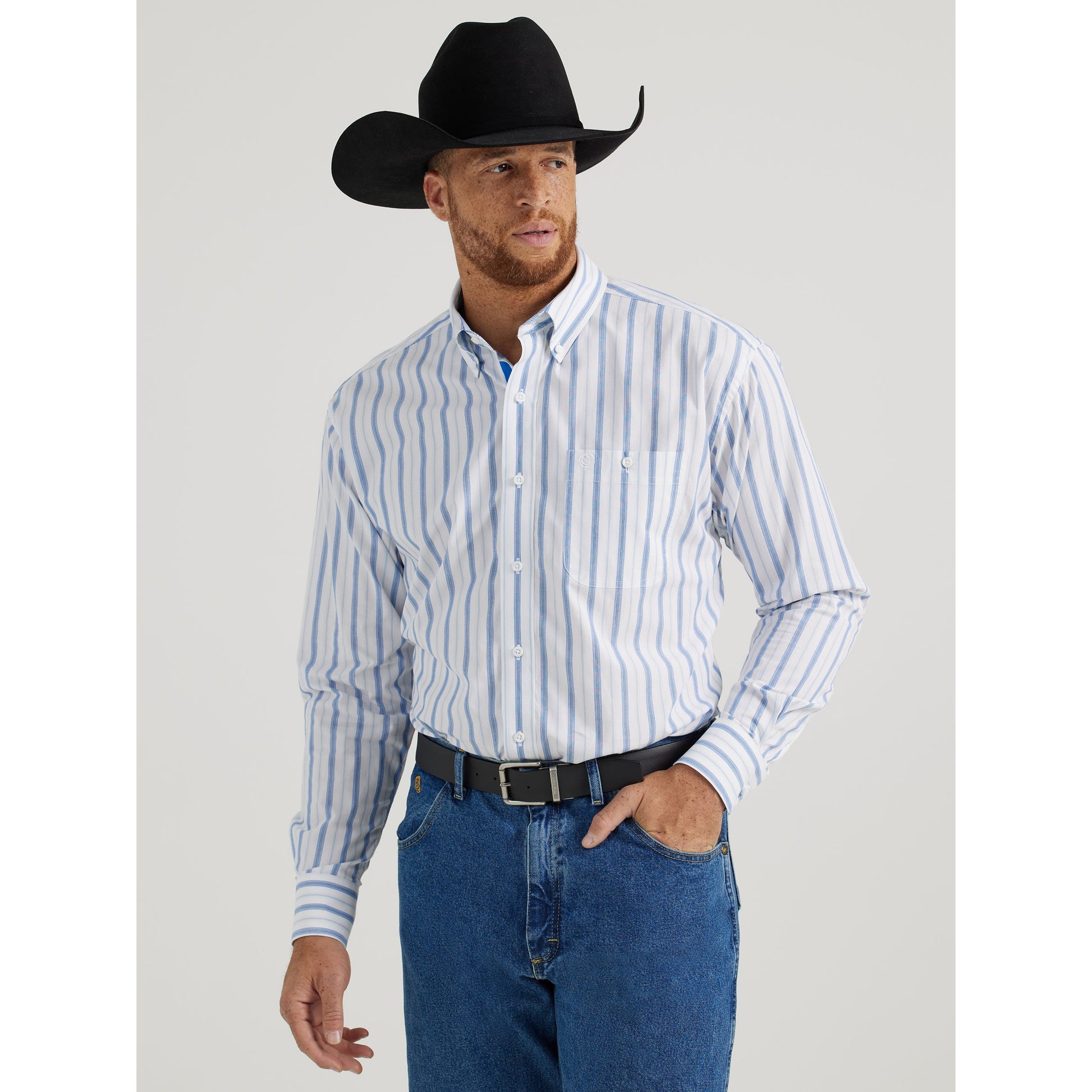 Wrangler Men's George Strait Long Sleeve Stripe Shirt - White
