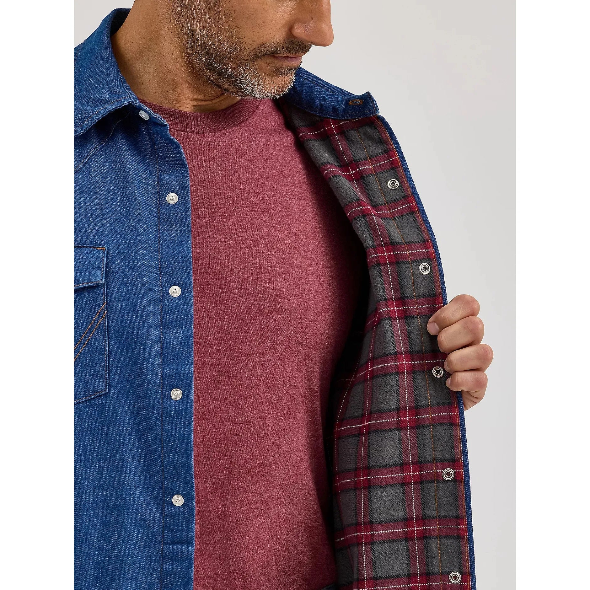 Wrangler Men's Long Sleeve Flannel Lined Work Shirt- Blue Denim