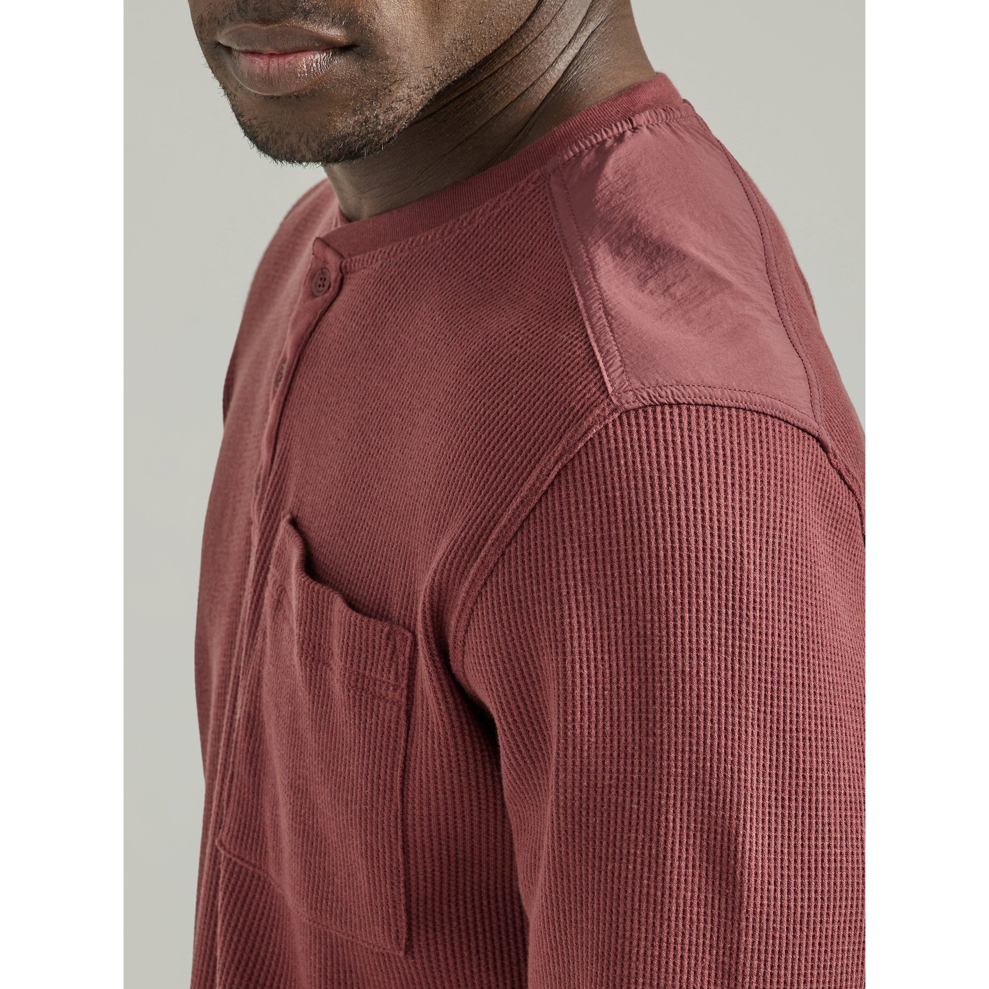 Wrangler Men's Long Sleeve Henley Shirt - Maroon