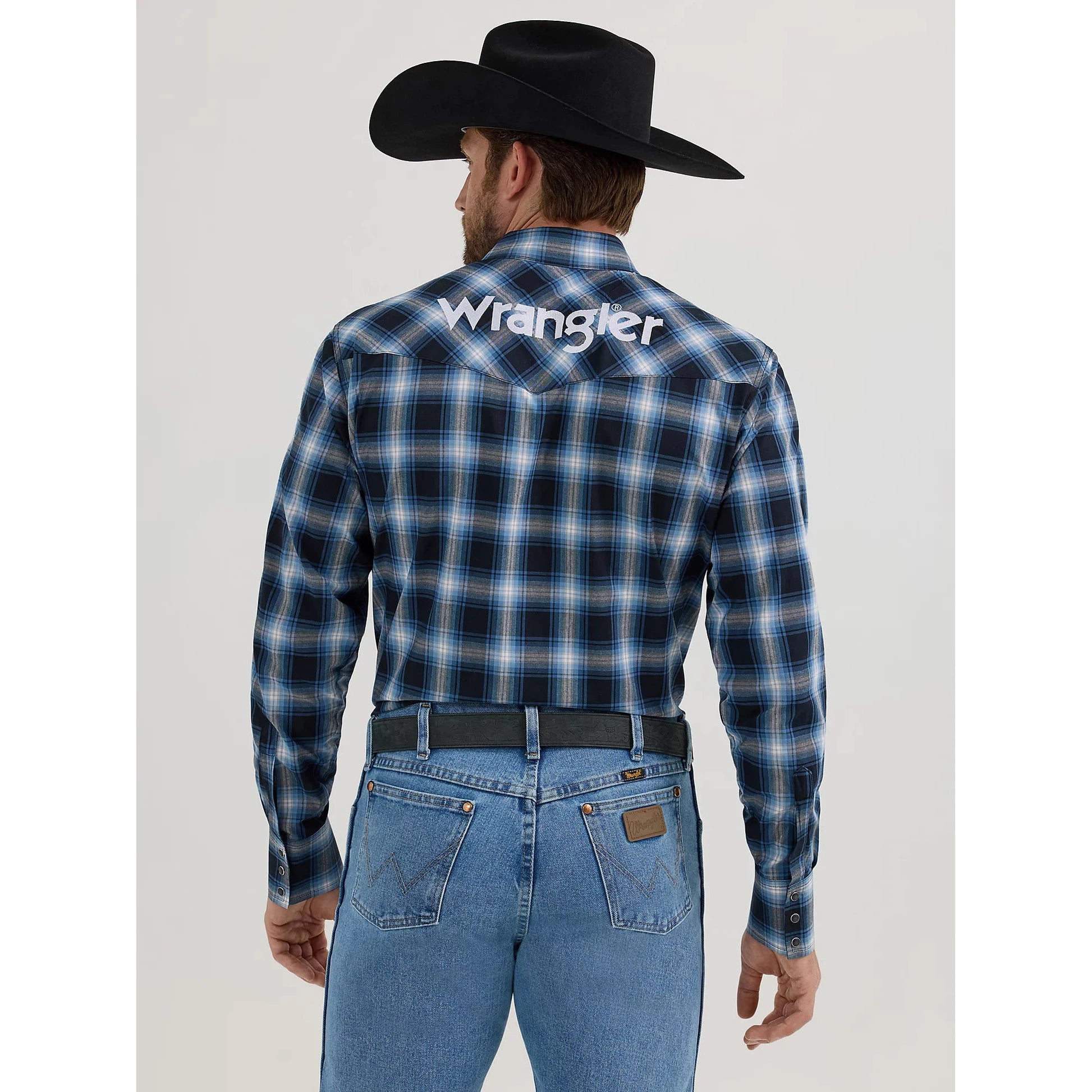 Wrangler Men's Long Sleeve Plaid Western Shirt- Black Ocean