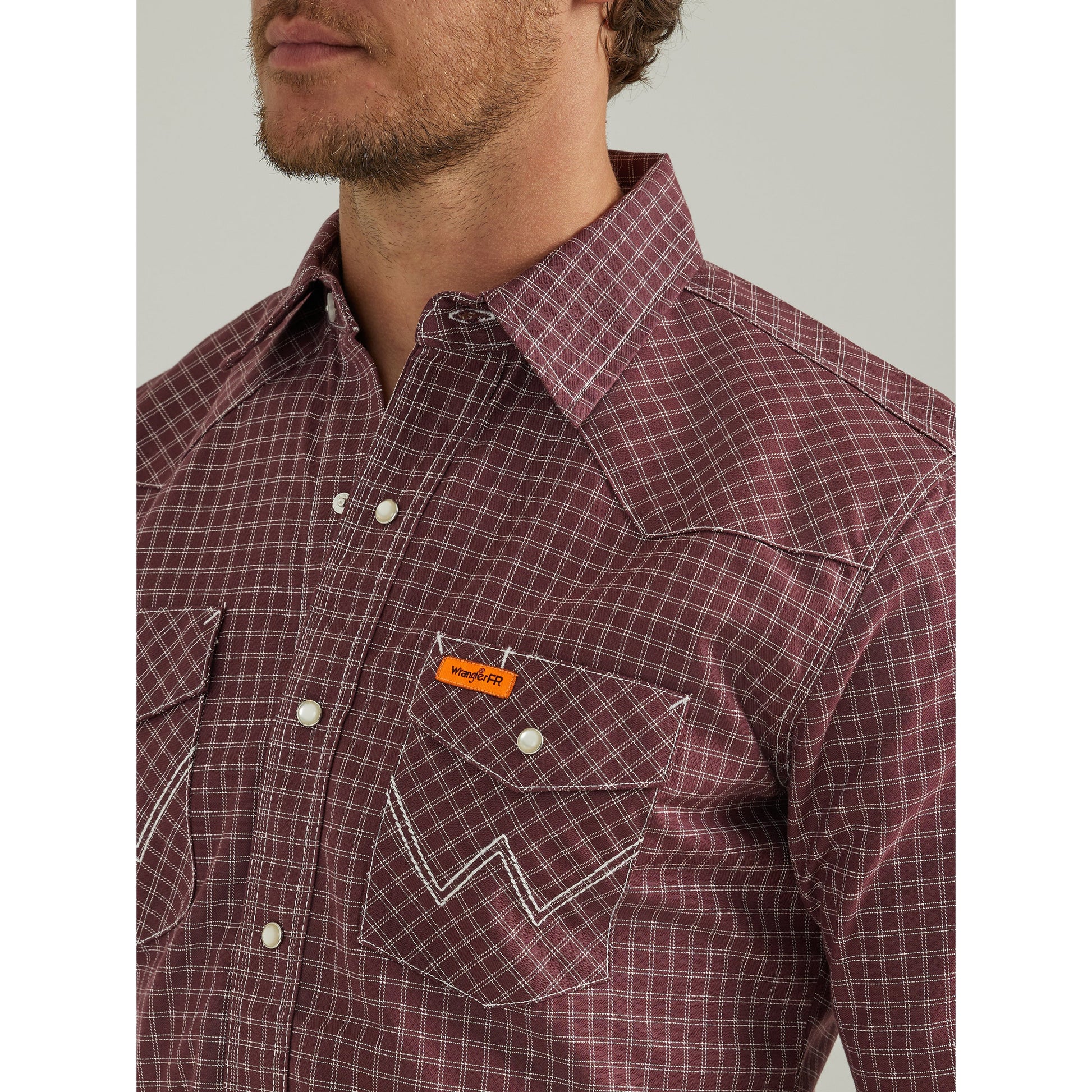 Wrangler Men's Flame Resistant Long Sleeve Snap Work Shirt - Burgundy