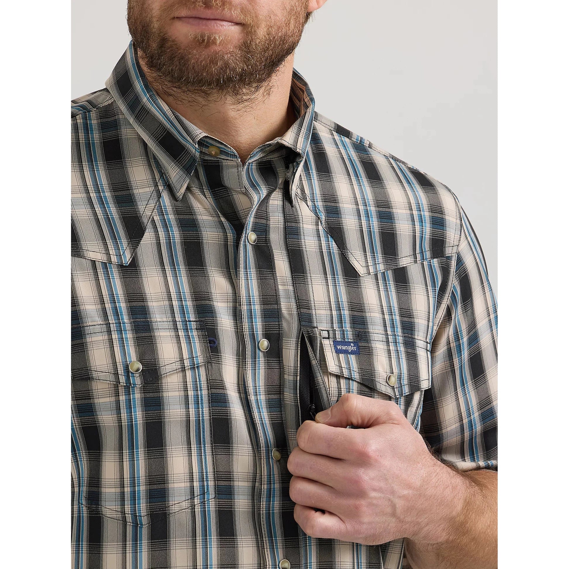 Wrangler Men's Performance Snap Long Sleeve Solid Shirt - Tan Black