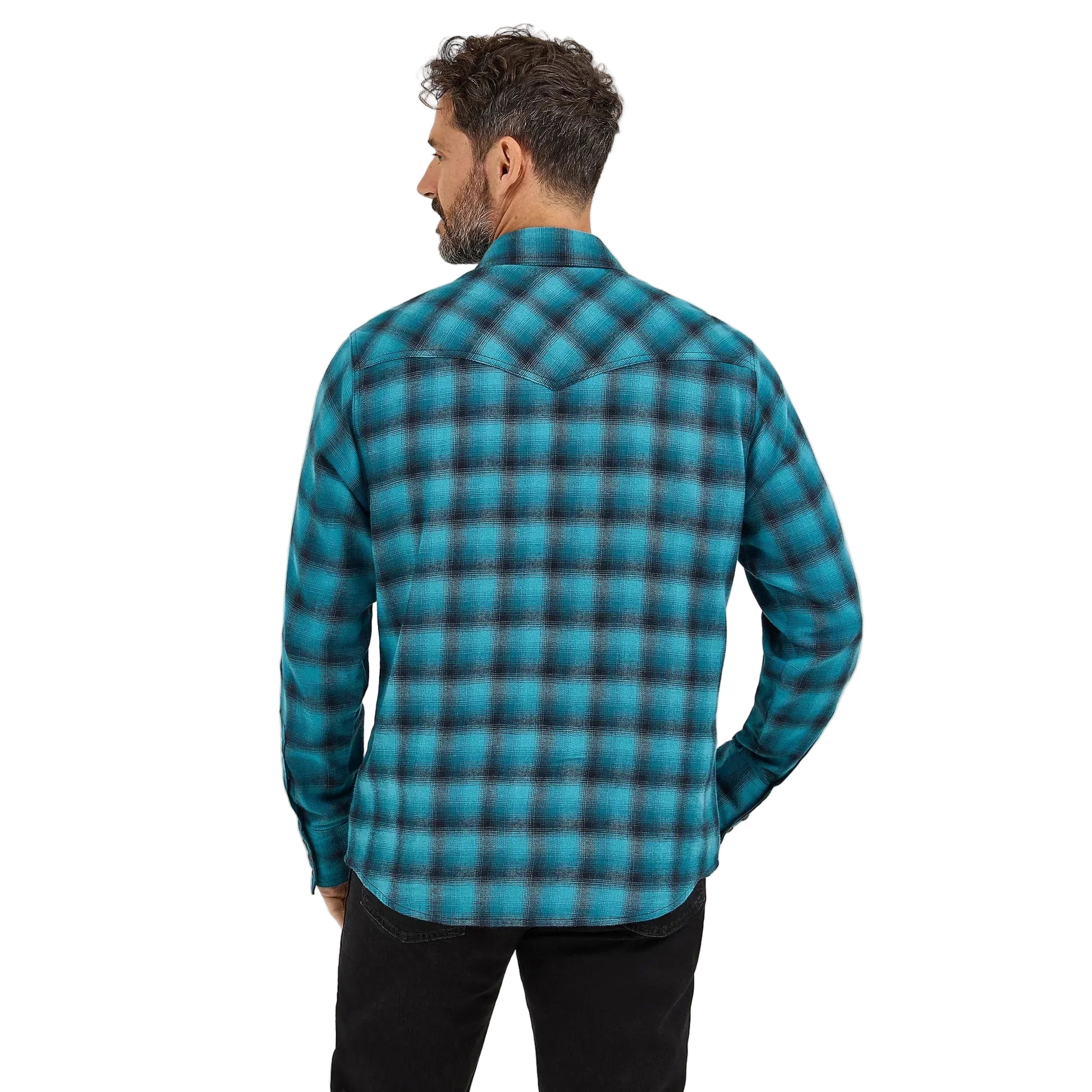 Wrangler Men's Retro Long Sleeve Western Snap Plaid Flannel Shirt - Turquoise Buffalo