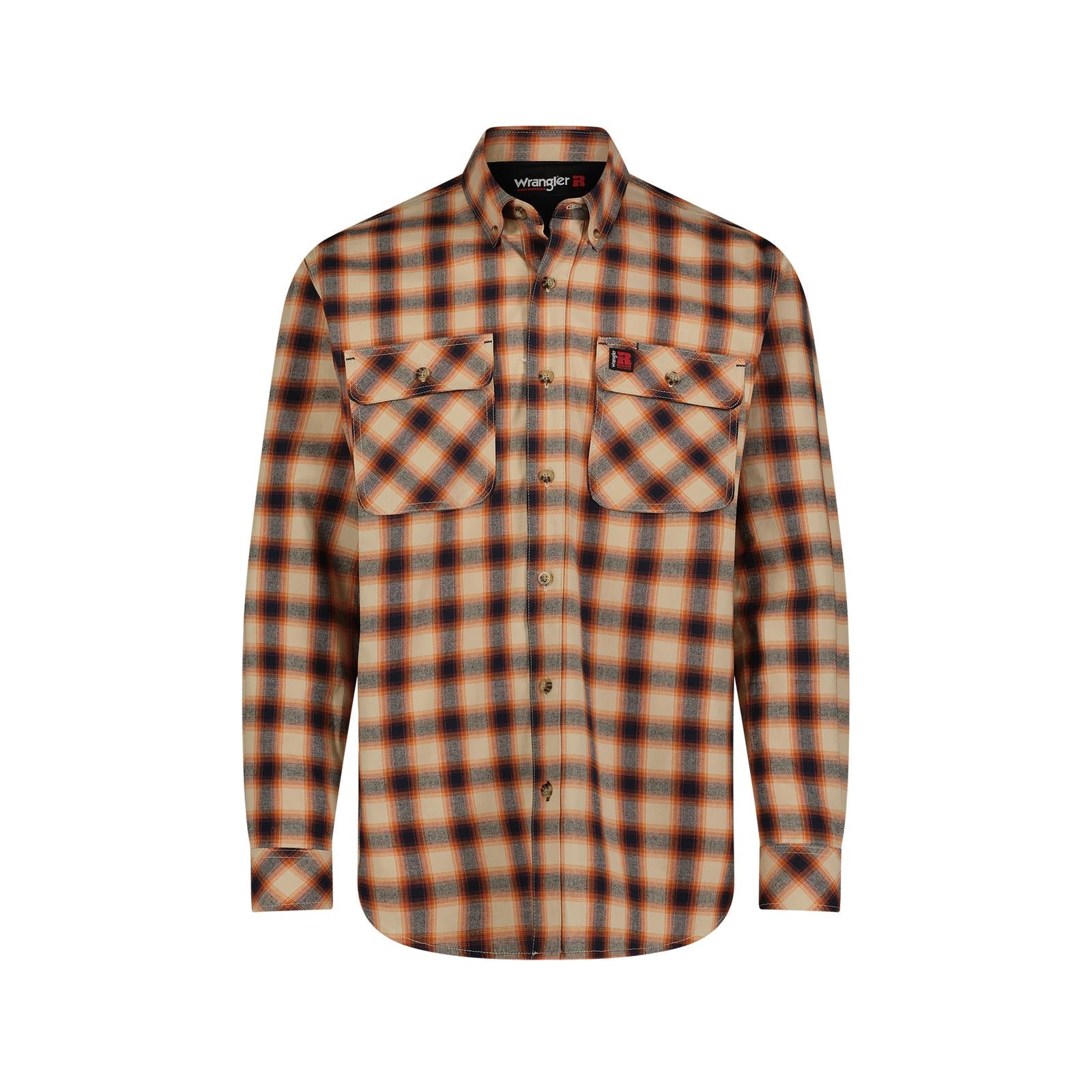 Wrangler Men's RIGGS Foreman Plaid Long Sleeve Workwear Shirt - Orange Tan Plaid