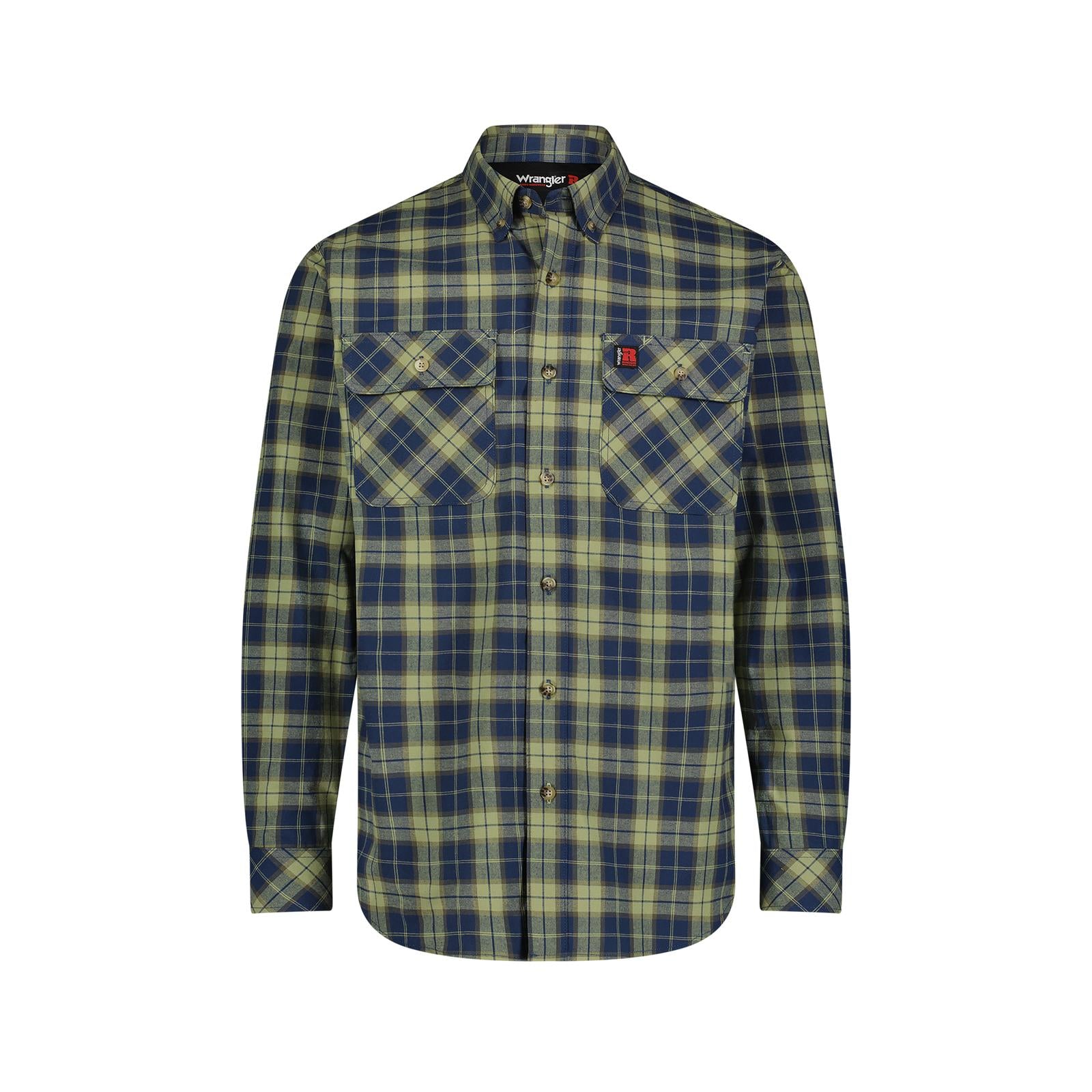 Wrangler Men's RIGGS Foreman Plaid Long Sleeve Workwear Shirt - Sage Navy Plaid