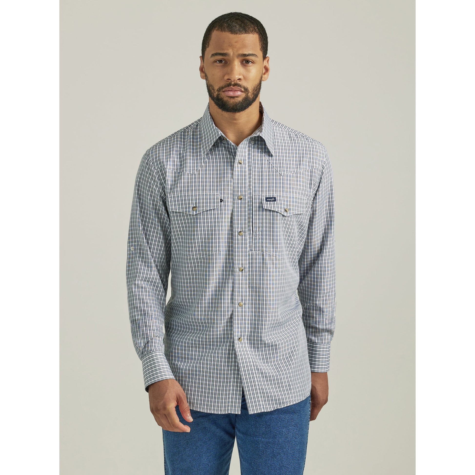 Wrangler Men's Western Plaid Long Sleeve Shirt - Navy