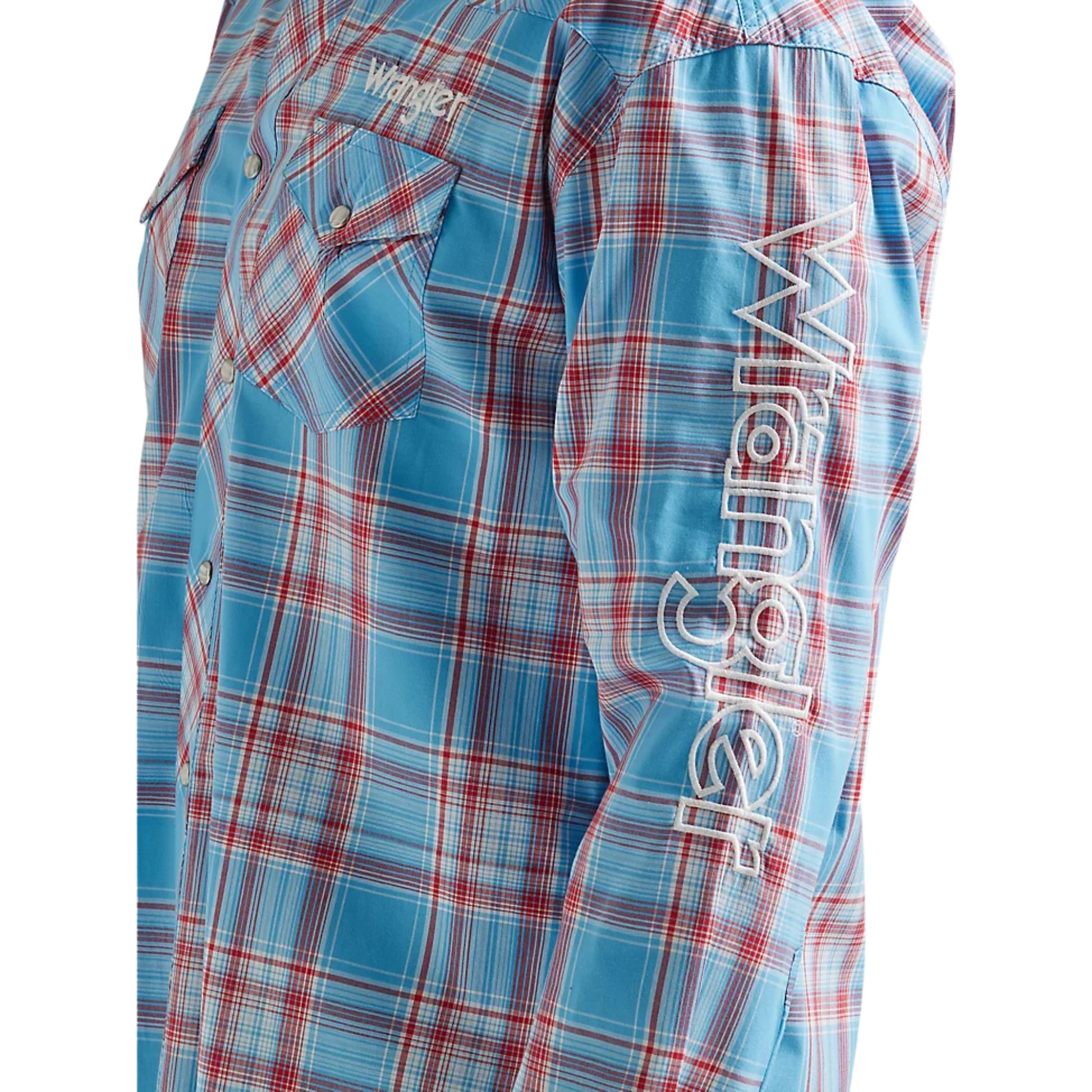 Wrangler Men's Logo Long Sleeve Western Snap Plaid Shirt - Sunny Blue
