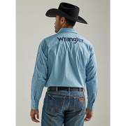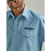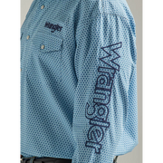 Wrangler Men's Logo Long Sleeve Western Snap Print Shirt - Dusty Aqua