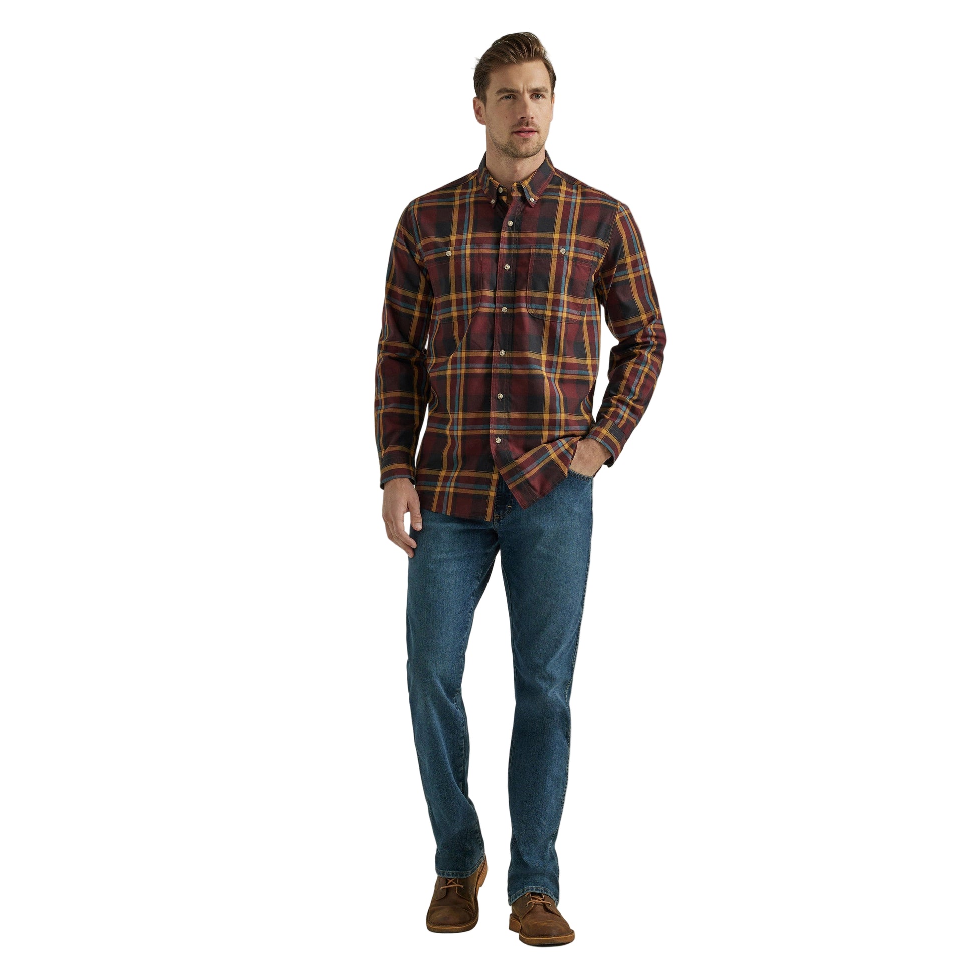 Wrangler Men's Rugged Wear Blue Ridge Plaid Long Sleeve Shirt - Burgundy