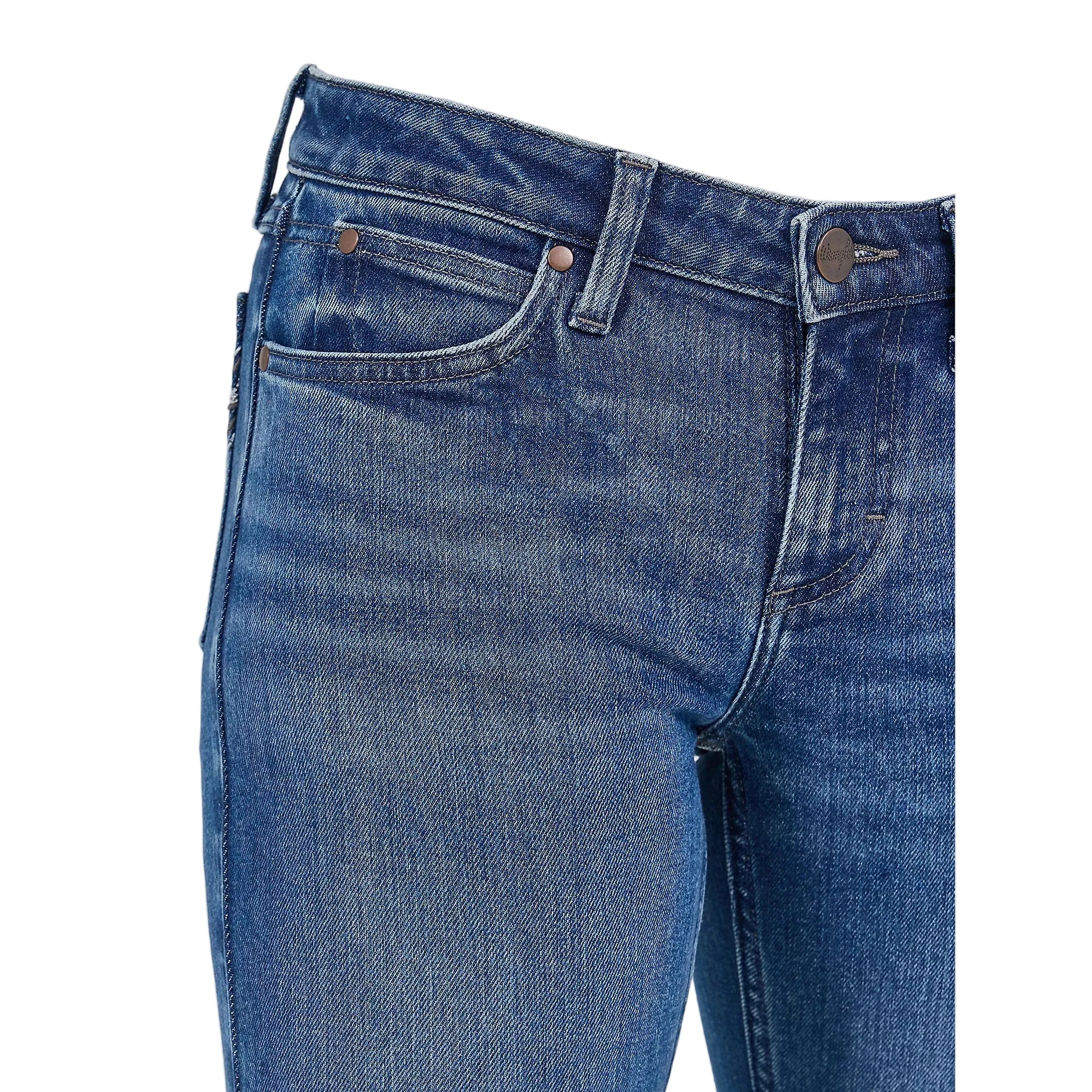 - Zip fly with button closure